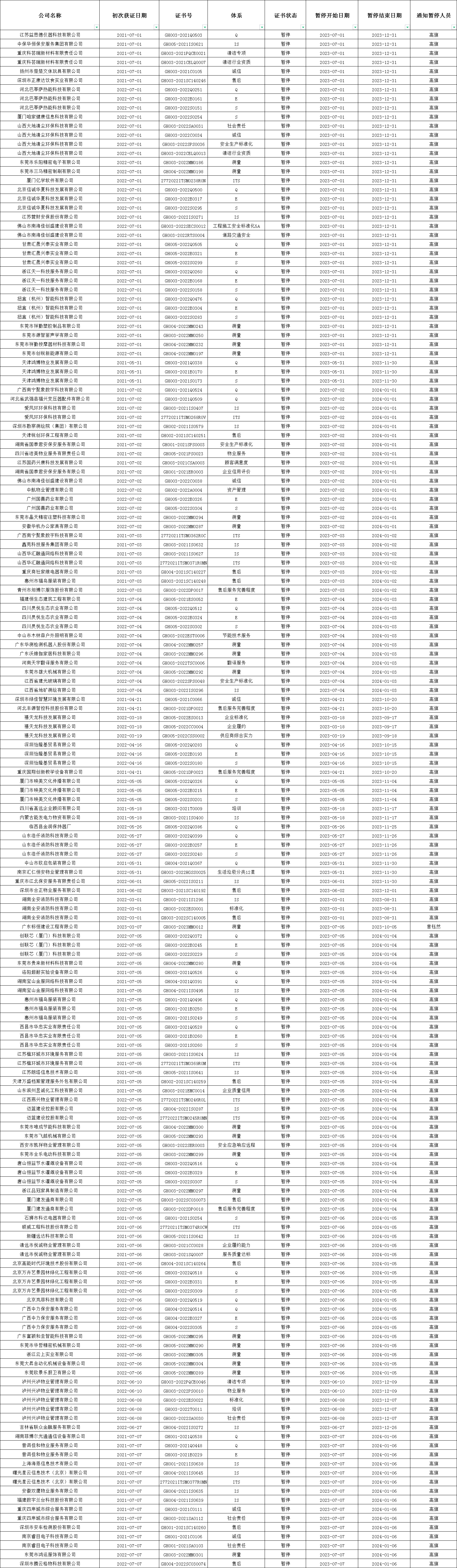 2023年7月暫停清單