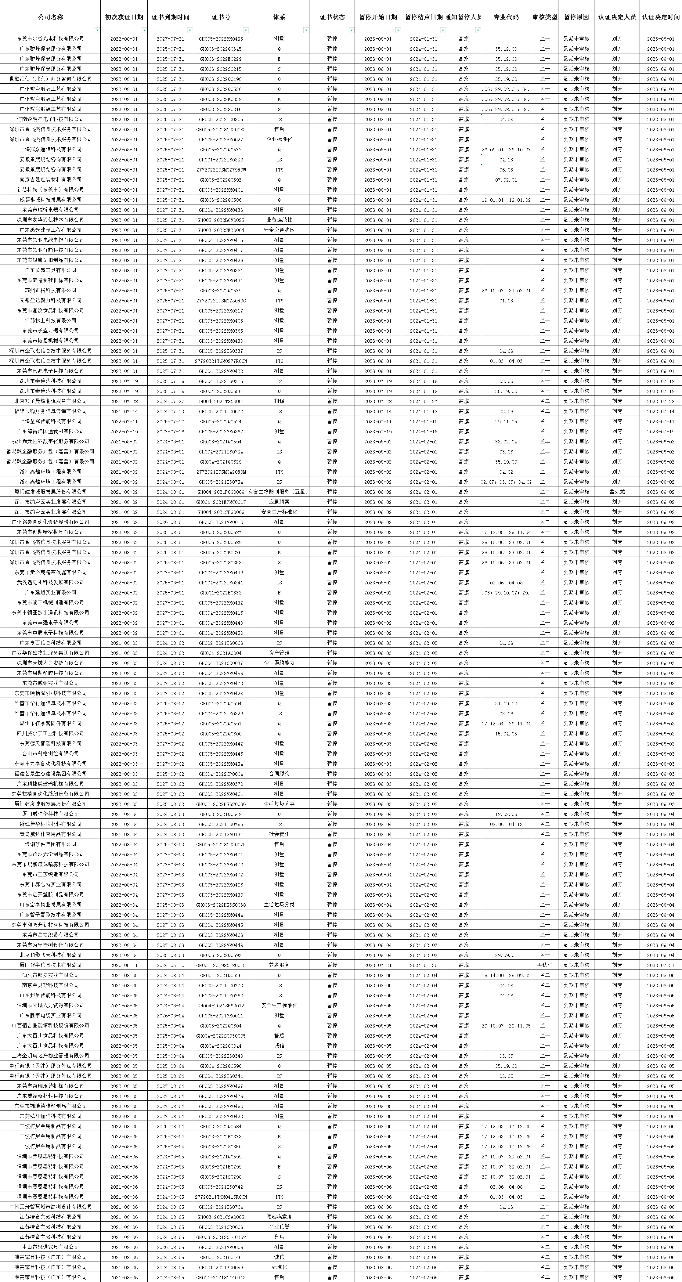 2023年8月暫停清單