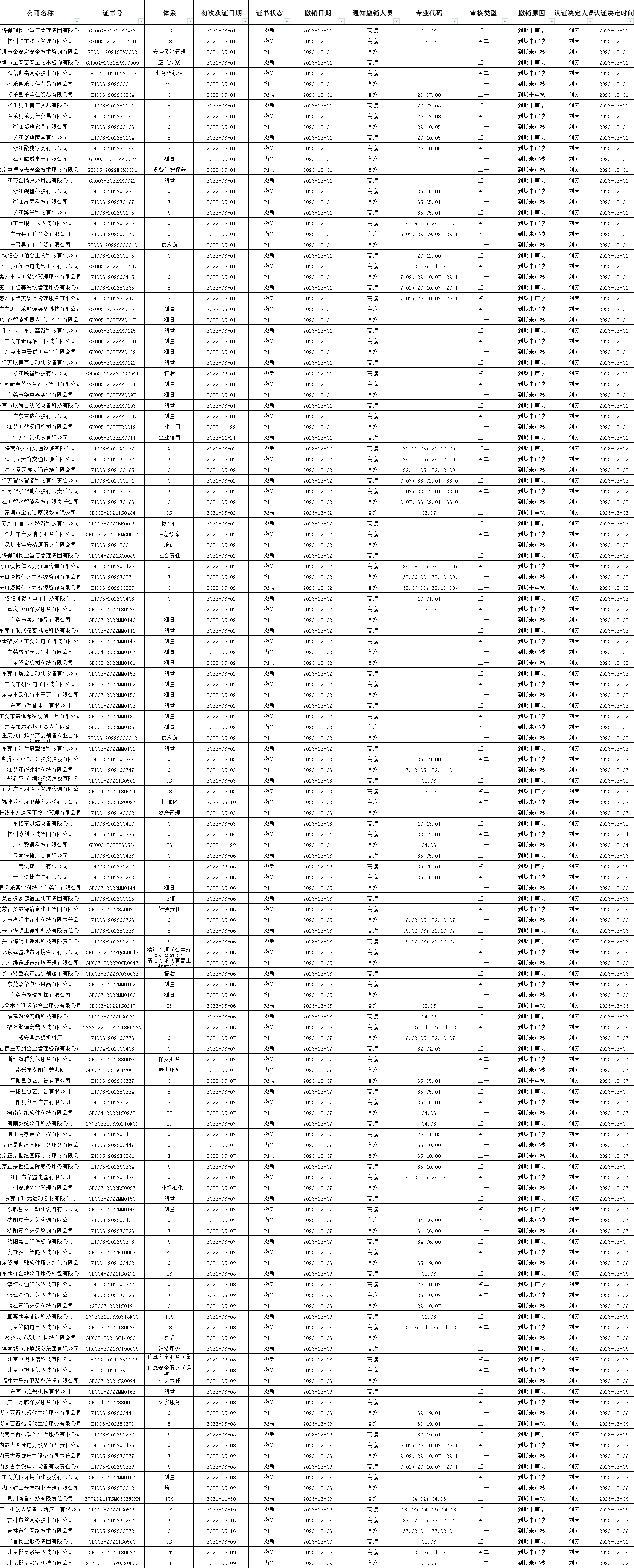 2023年12月撤銷清單